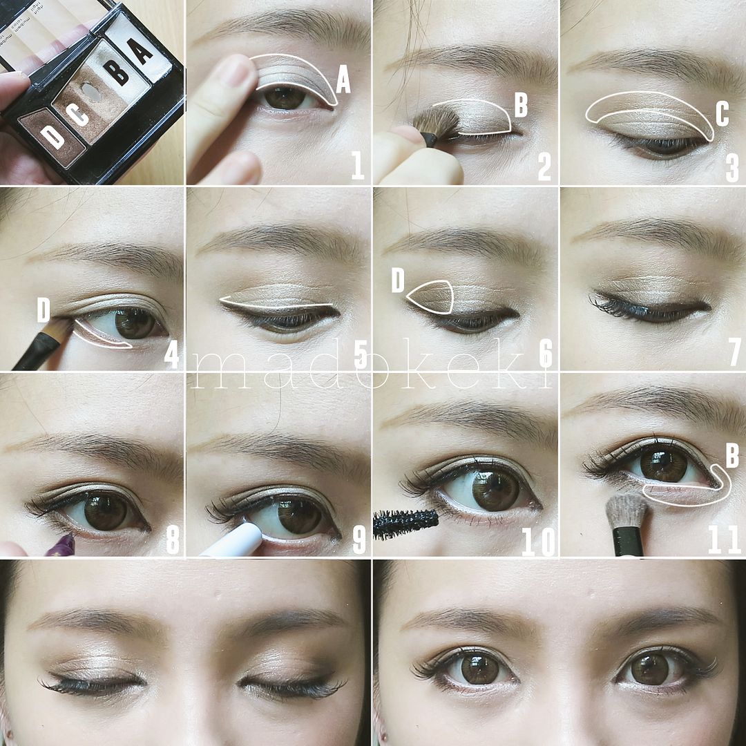 2. mix B and C together to highlight the inner corner and the inner half of the lower lash line.