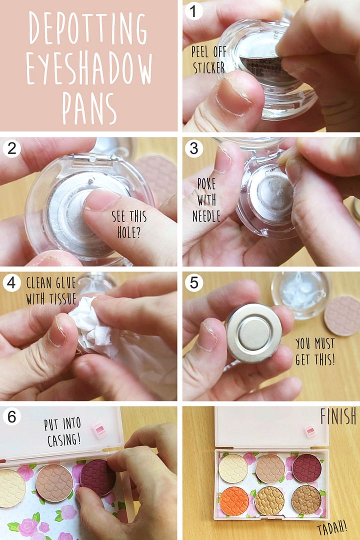 this method is meant for eyeshadow pans that are magnetic. if they aren't, simple stick a piece of magnetic strip onto it, it'll allow it to stick onto the magnetic case after that! ;)